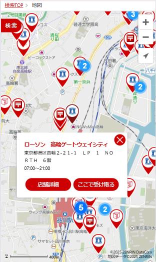 2.ローソンまたはロッカー/郵便局での受け取りを選択し、受け取り場所を選択